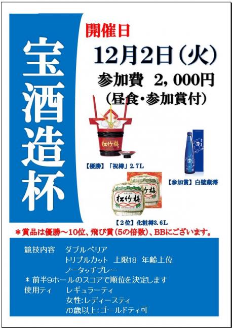 12月2日(火)にオープンハーフコンペ「宝酒造杯」を開催致します。