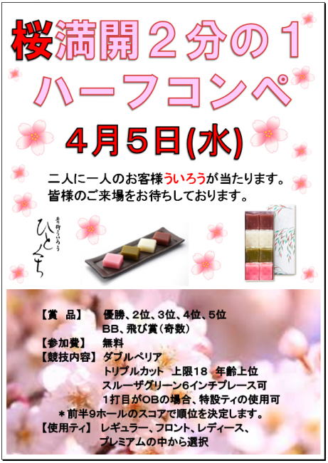 ◇◇4月5日(水)「桜満開2分の1ハーフコンペ」開催のご案内◇◇