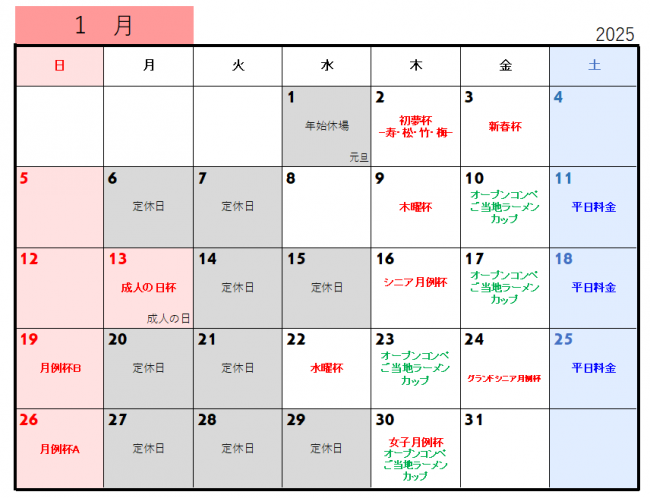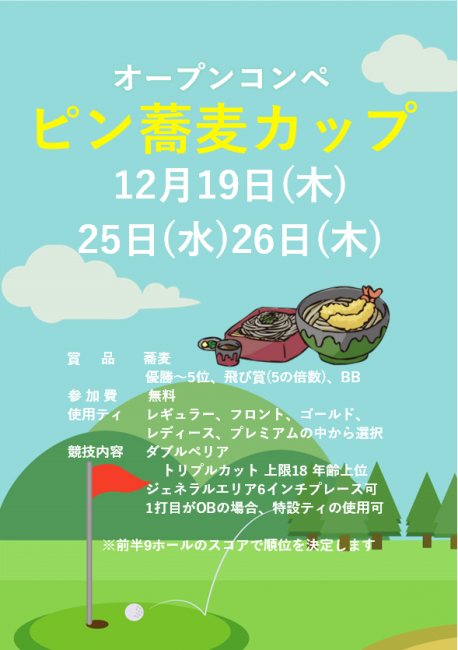 12月19日(木)、25日(水)、26日(木) オープンコンペ ピン蕎麦カップのご案内