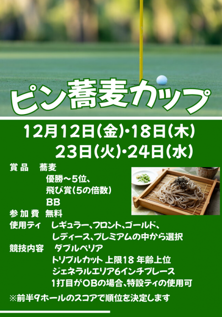 12月12日(金)、18日(木)、23日(火)、24日(水) オープンコンペ ピン蕎麦カップのご案内