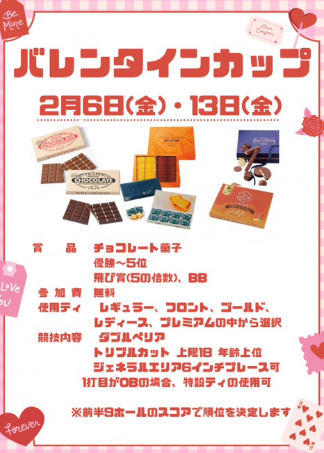 2月6日(金)、13日(金) オープンコンペ バレンタインカップのご案内
